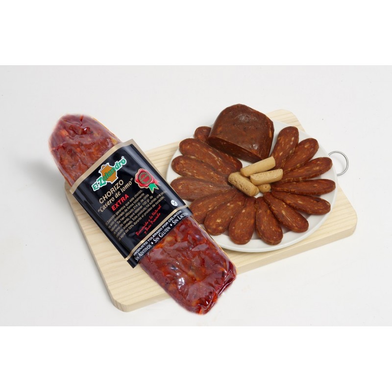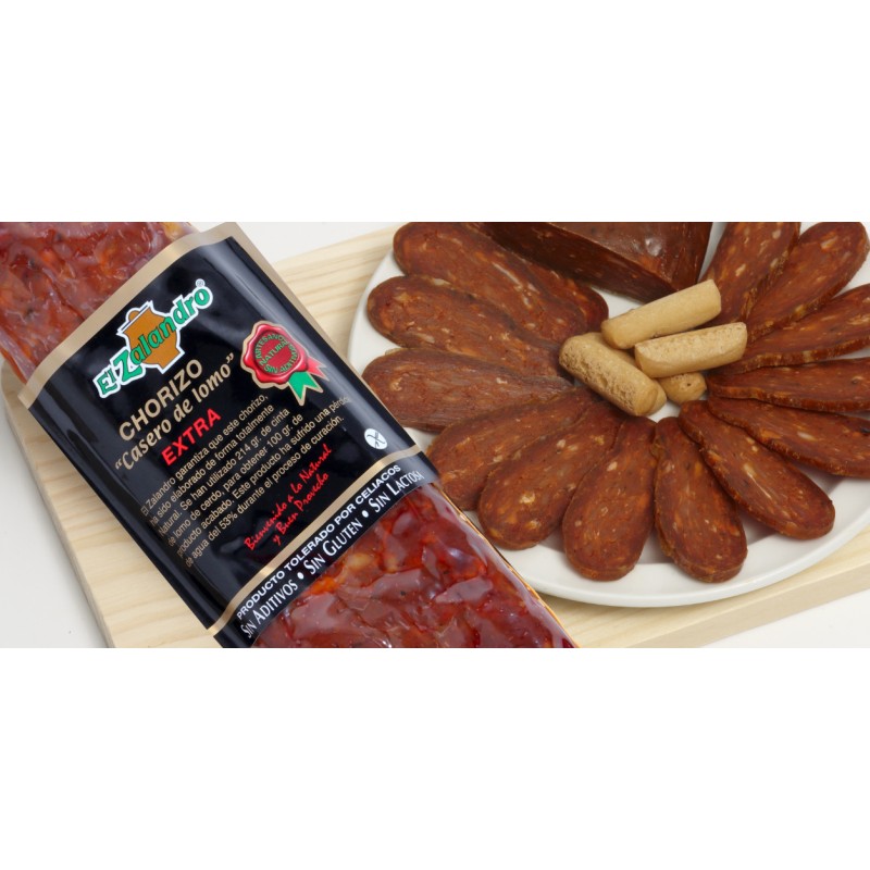 ELABORACIÓN/CONSERVACIÓN: El proceso de elaboración es completamente artesanal. Una vez picada la cinta de lomo, se procede a condimentarla para su maceración y posteriormente embutir el chorizo. Es un embutido de larga curación, en el transcurso de la cual nuestras matanceras lo prensaran con sus propias manos durante el proceso de curación, de ahí su forma aplastada e irregular. Este proceso es necesario por no contener ningun aditivo.